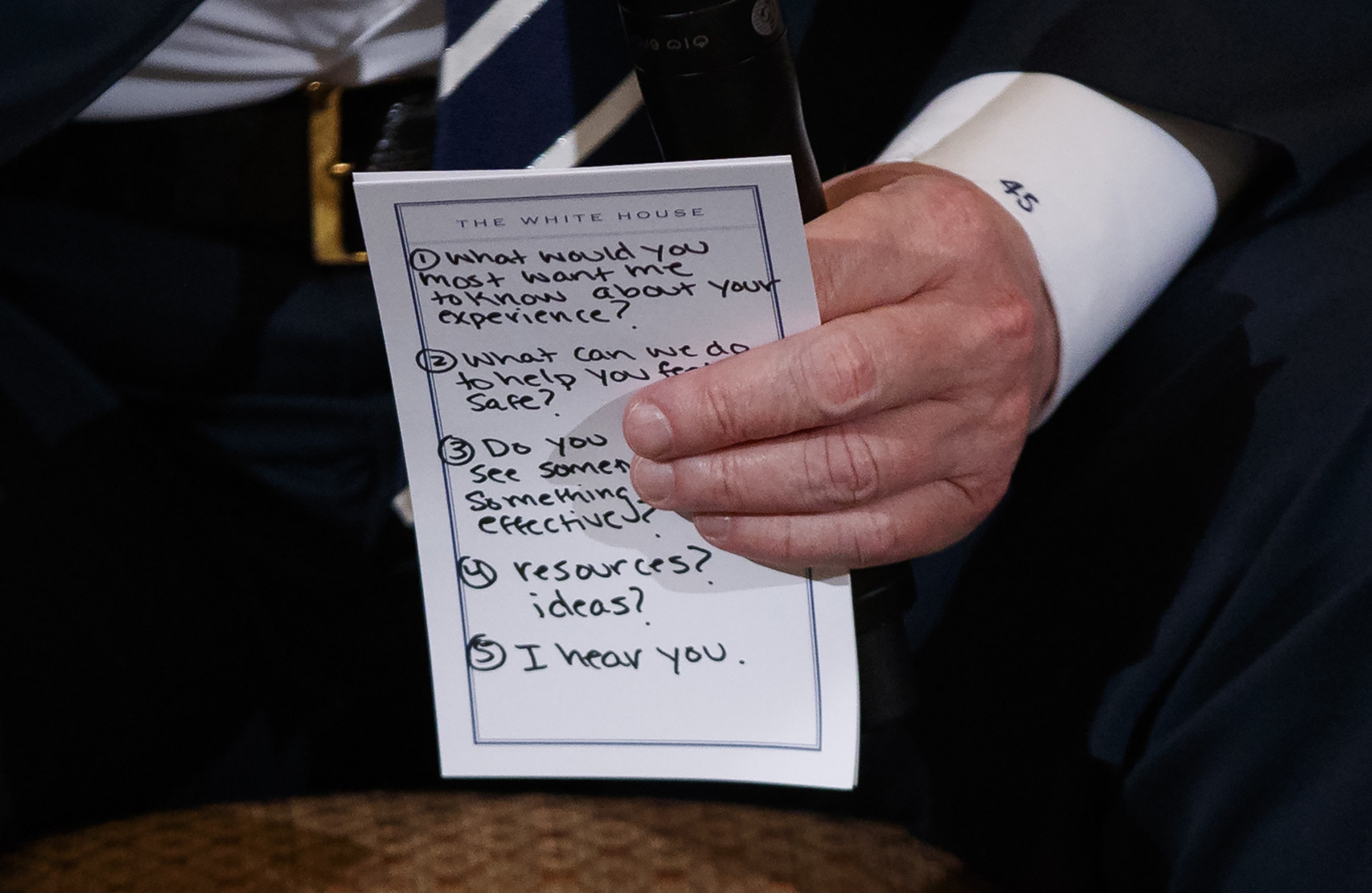What I saw the video show was Trump not listening, but busily mentally debunking every point the Indiana AG was trying to make. Trump's mind is made up... armed teacher offense. It doesn't require many $$$, only teacher martyrdom and video game reflexes.